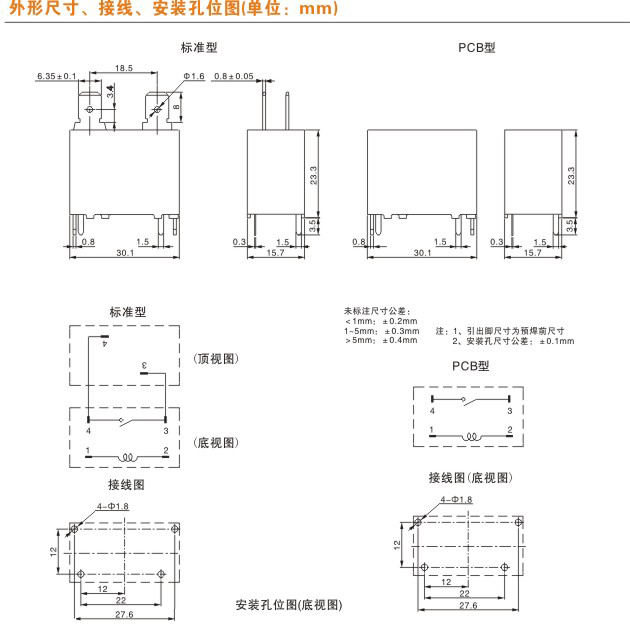 觸點(diǎn)形式繼電器常開或常閉(常見4、6只腳)、轉(zhuǎn)換(常見5只腳或8只腳)