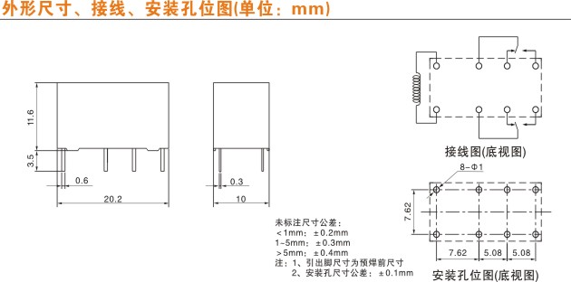 一般繼電器的外形尺寸都有一定的公差,因此在設計電路和安裝間隙時,推薦按說明書中規定的最大尺寸進行設計。
