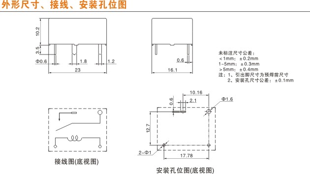 一般繼電器的外形尺寸都有一定的公差,因此在設計電路和安裝間隙時,推薦按說明書中規定的最大尺寸進行設計。