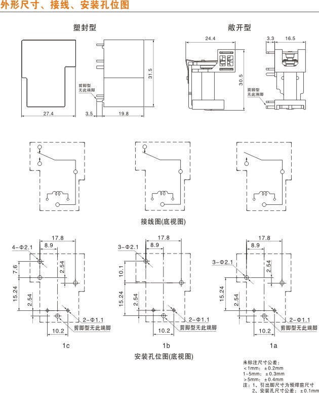 一般繼電器的外形尺寸都有一定的公差,因此在設計電路和安裝間隙時,推薦按說明書中規定的最大尺寸進行設計。