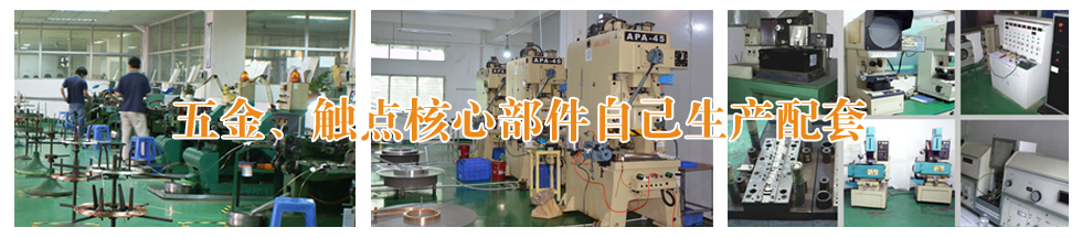 五金觸點(diǎn)部目前主要生產(chǎn)的有:銀觸點(diǎn)、三復(fù)合觸點(diǎn)、銅觸點(diǎn)、各種型號(hào)規(guī)格的端腳、簧片、銜鐵、軛鐵、觸 片、彈片。
